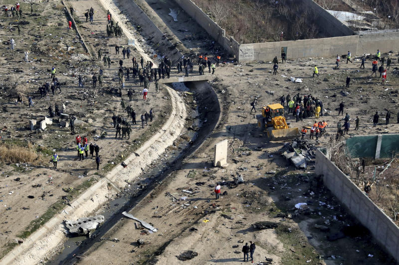 A photo taken on Jan 8, 2020, shows the scene where the Ukrainian plane crashed, in Shahedshahr, Iran. Iran's armed forces say they mistook the passenger plane for a cruise missile.