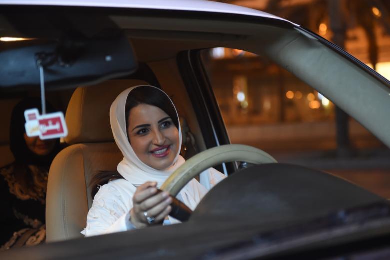Saudi Samar Al-Moqren drives her car through the streets of the Saudi capital Riyadh for the first time just after midnight, on June 24, 2018.