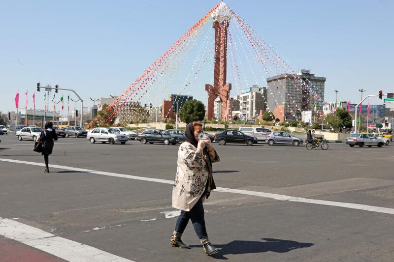 A pedestrian crosses a street while wearing a protective mask amid the spread of the coronavirus in Teheran, Iran, on March 10, 2020.