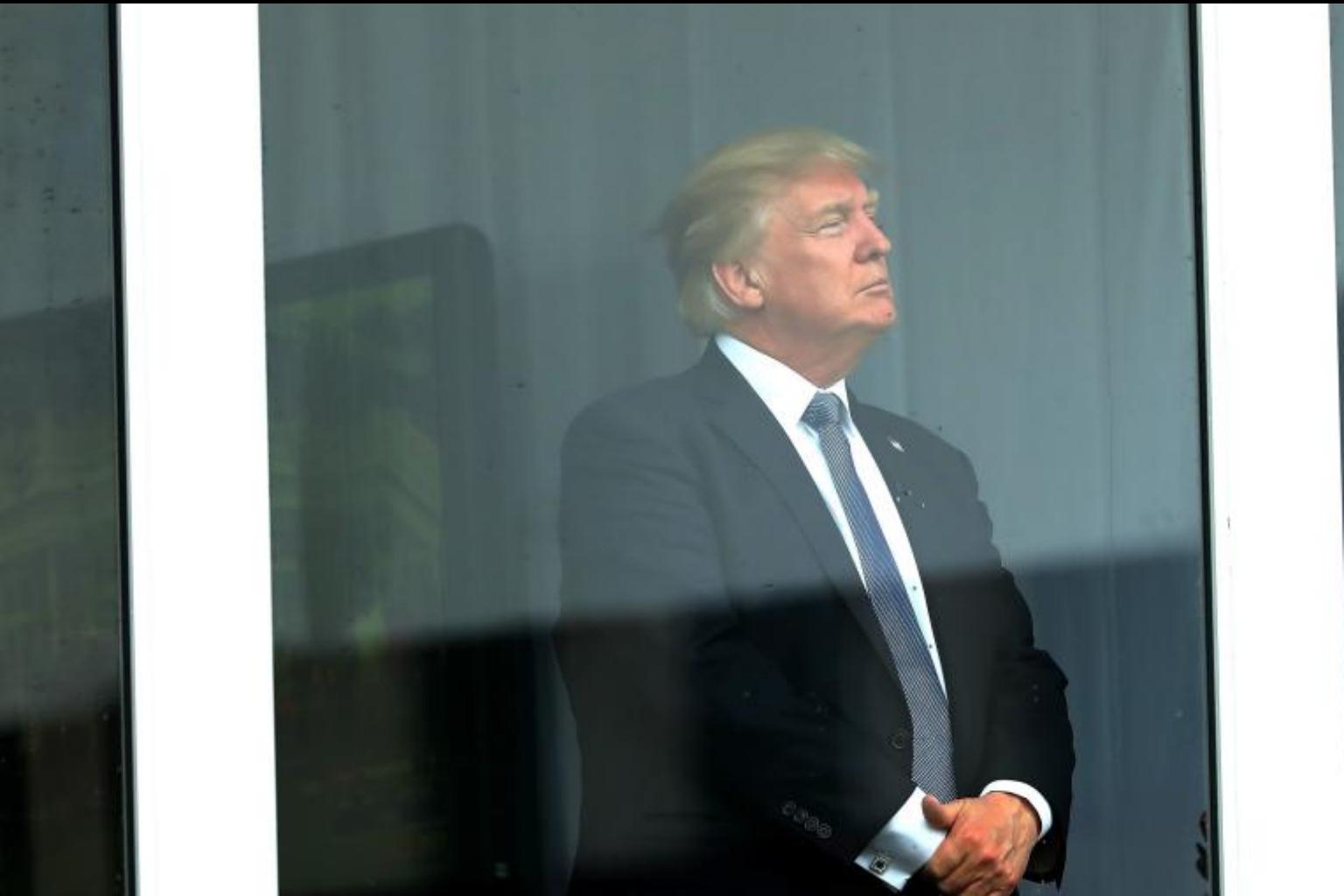 U.S. President Donald Trump watches the U.S. Women's Open round two at Trump National Golf Course in Bedminster, New Jersey, on July 14, 2017.