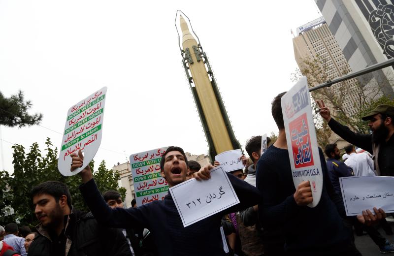 TEHERAN (REUTERS) - Iran put a ballistic missile on display as thousands marched on Saturday (Nov 4) to mark the anniversary of the 1979 seizure of the US embassy, with a senior official accusing President Donald Trump of a "crazy" return to confrontation with Teheran.