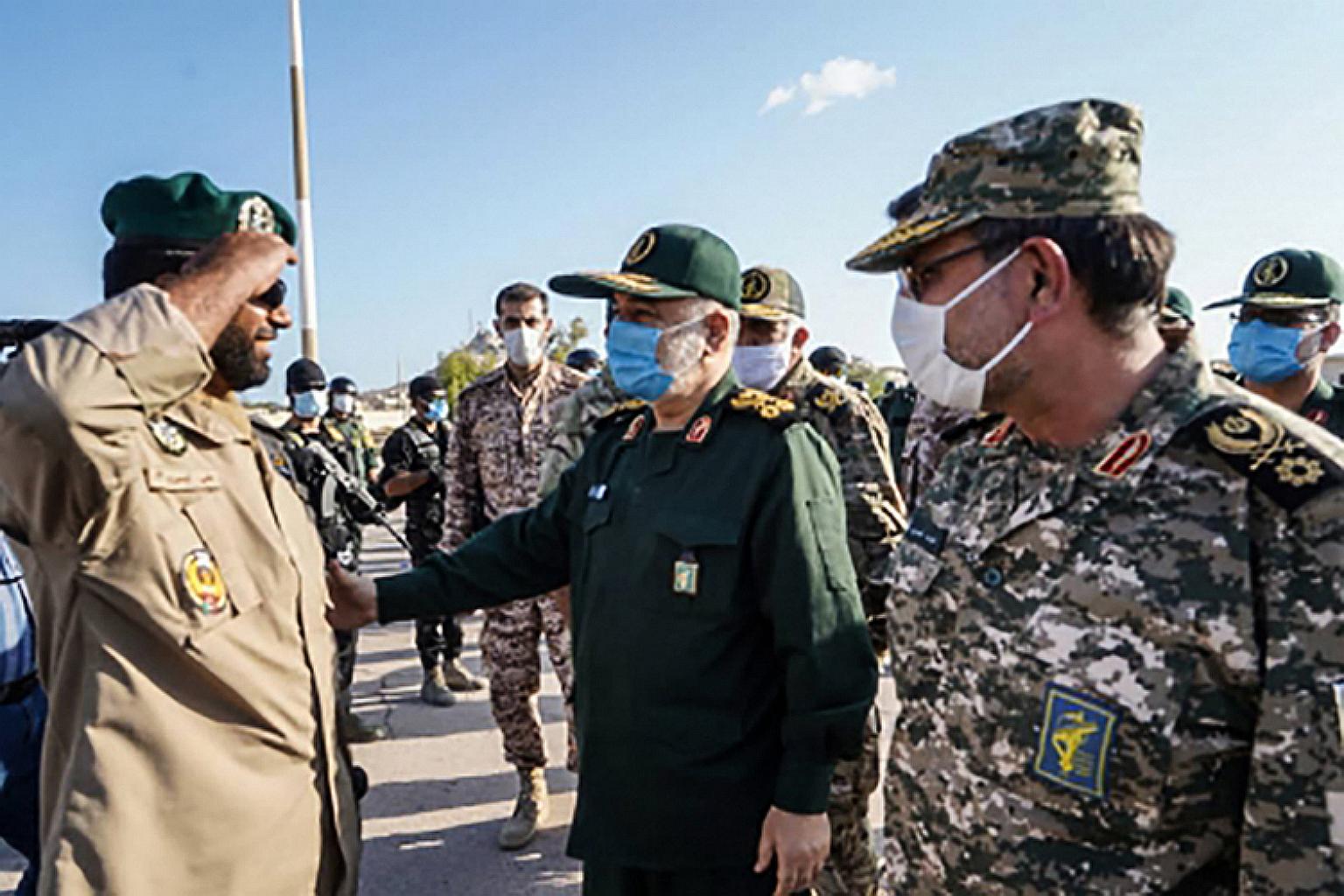 Iran's Revolutionary Guards chief Hossein Salami (centre) inspecting troops stationed on Abu Musa island on Jan 2, 2021.