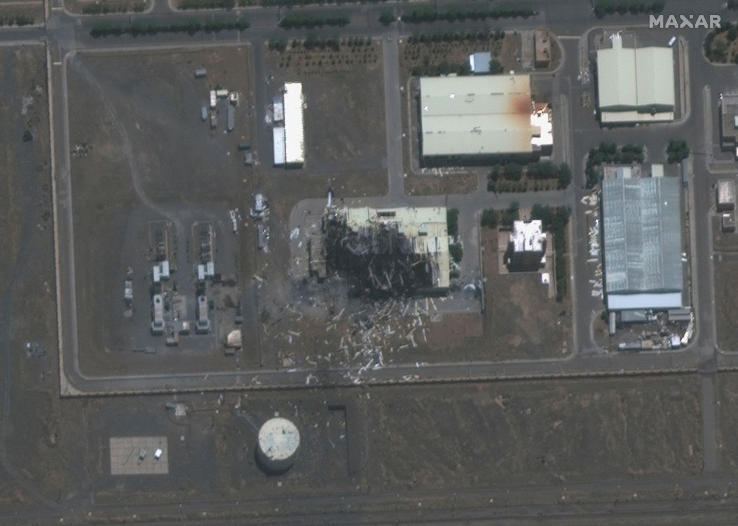 A handout satellite image shows a closeup view of a building damaged by fire at the Natanz nuclear facility in Iran July 8, 2020.