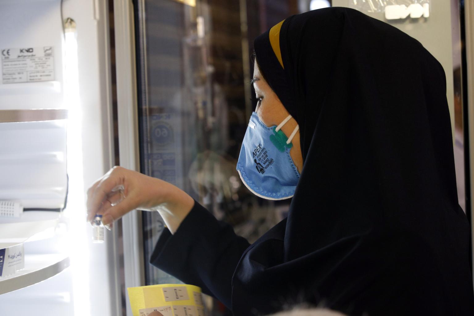 An Iranian nurse picks up a vial containing locally made Covid-19 vaccine from a fridge on Dec 29, 2020.