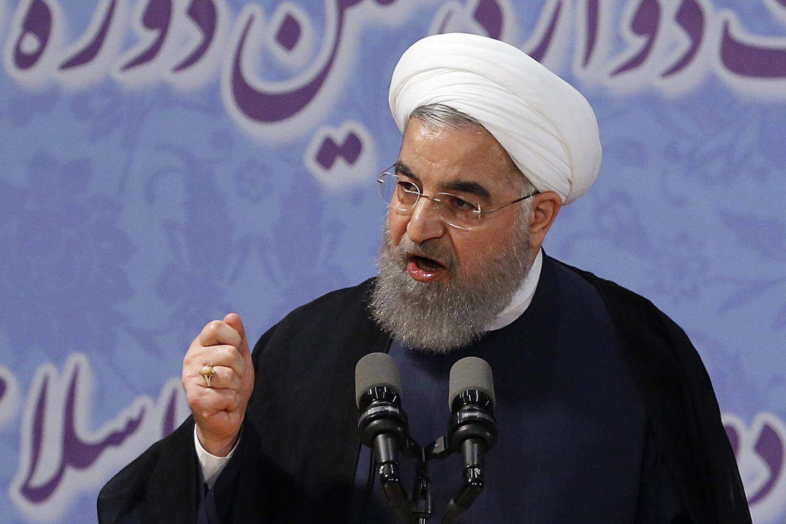 Iranian President Hassan Rouhani delivers a speech after registering to run for re-election at the interior ministry in the capital Tehran on April 14, 2017.