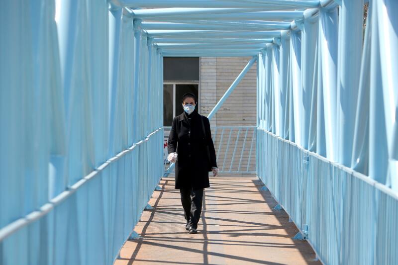 An Iranian pedestrian walks while wearing a protective mask in Teheran, Iran, on March 10, 2020.