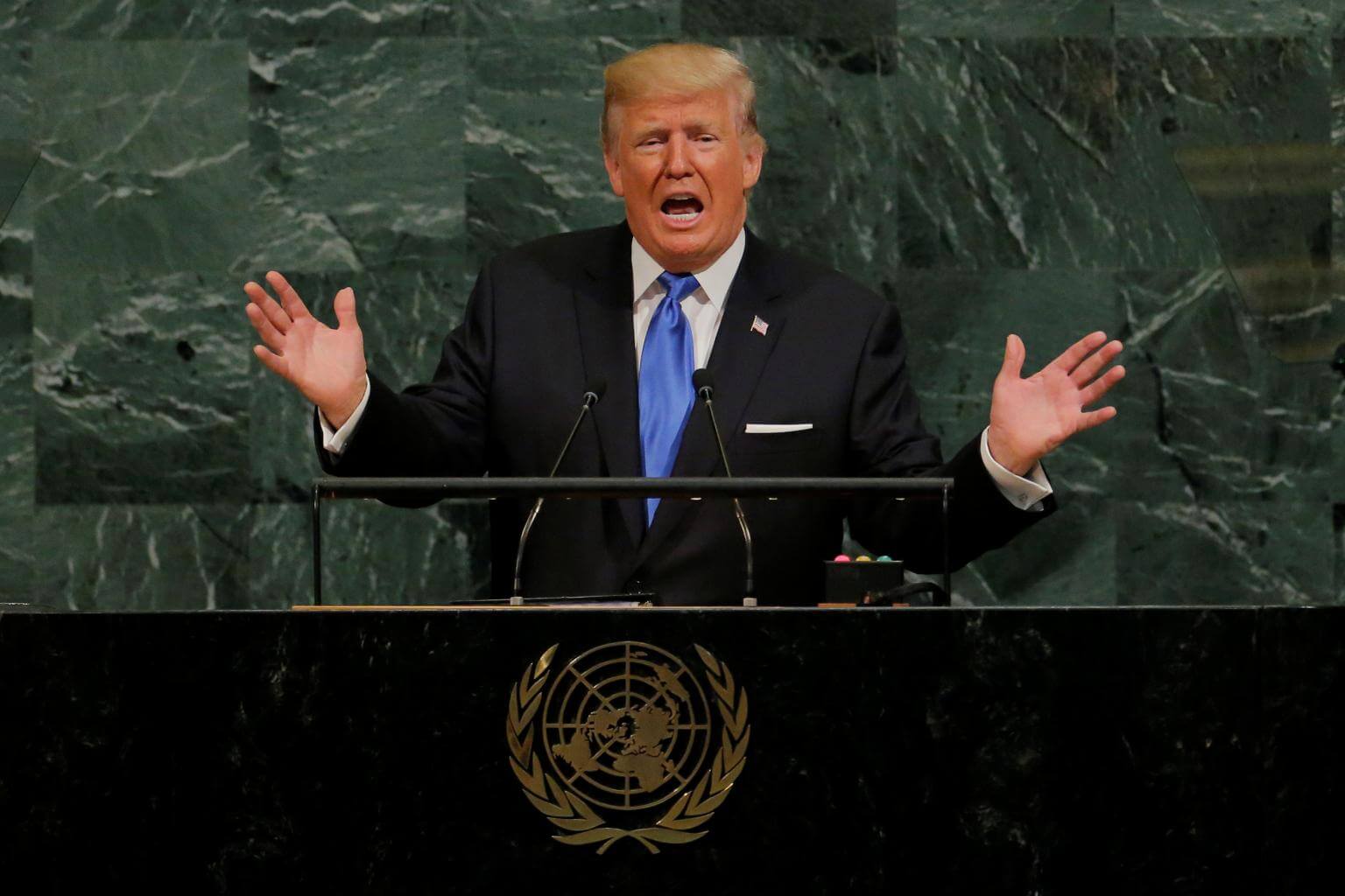 US President Donald Trump speaking at the UN General Assembly in New York on Sept 19, 2017.