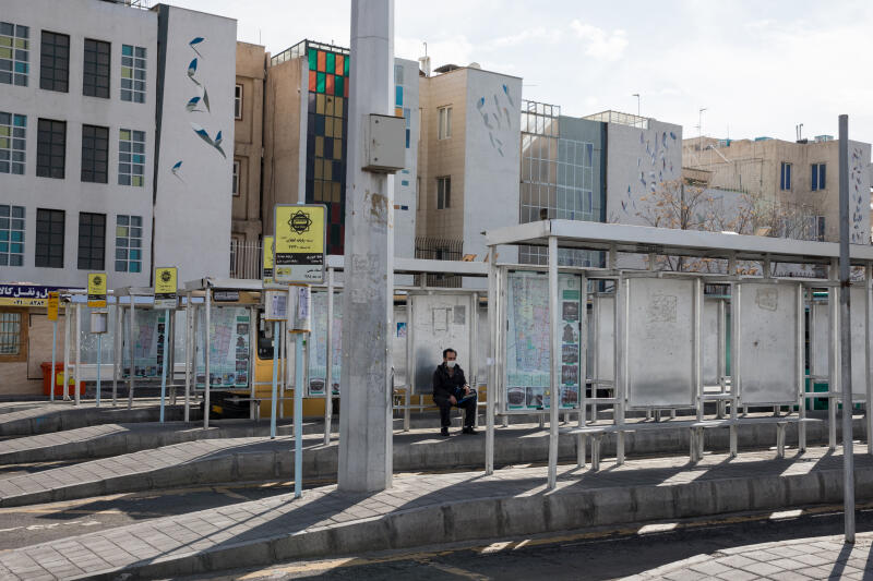A man is sitting in an empty bus station on the eve before the Persian New Year during the coronavirus outbreak in Teheran, Iran, on March 19, 2020.
