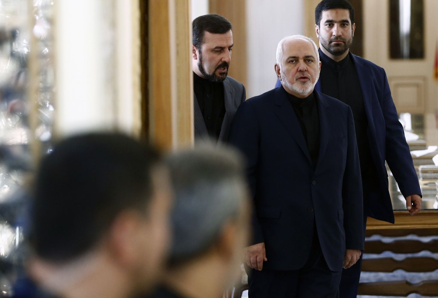 Zarif (centre) earlier accused US counterpart Mike Pompeo of refusing to issue visas for Iran’s delegation.