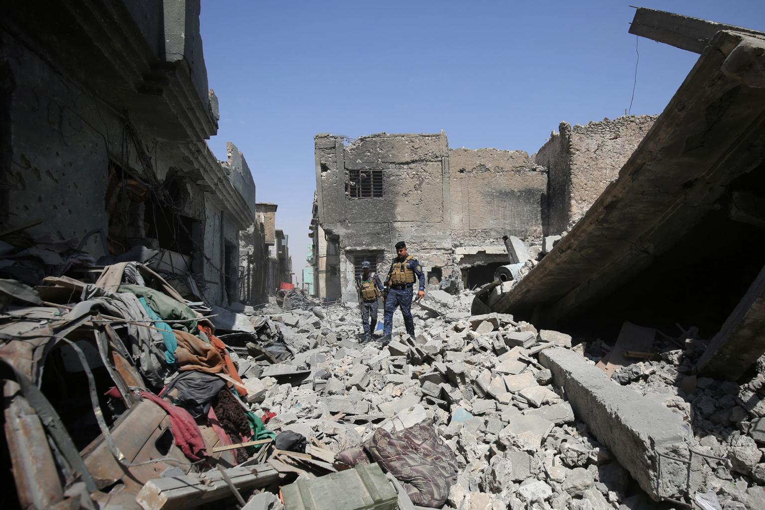 Members of the Iraqi forces patrolling the Old City of Mosul on July 1, 2017.