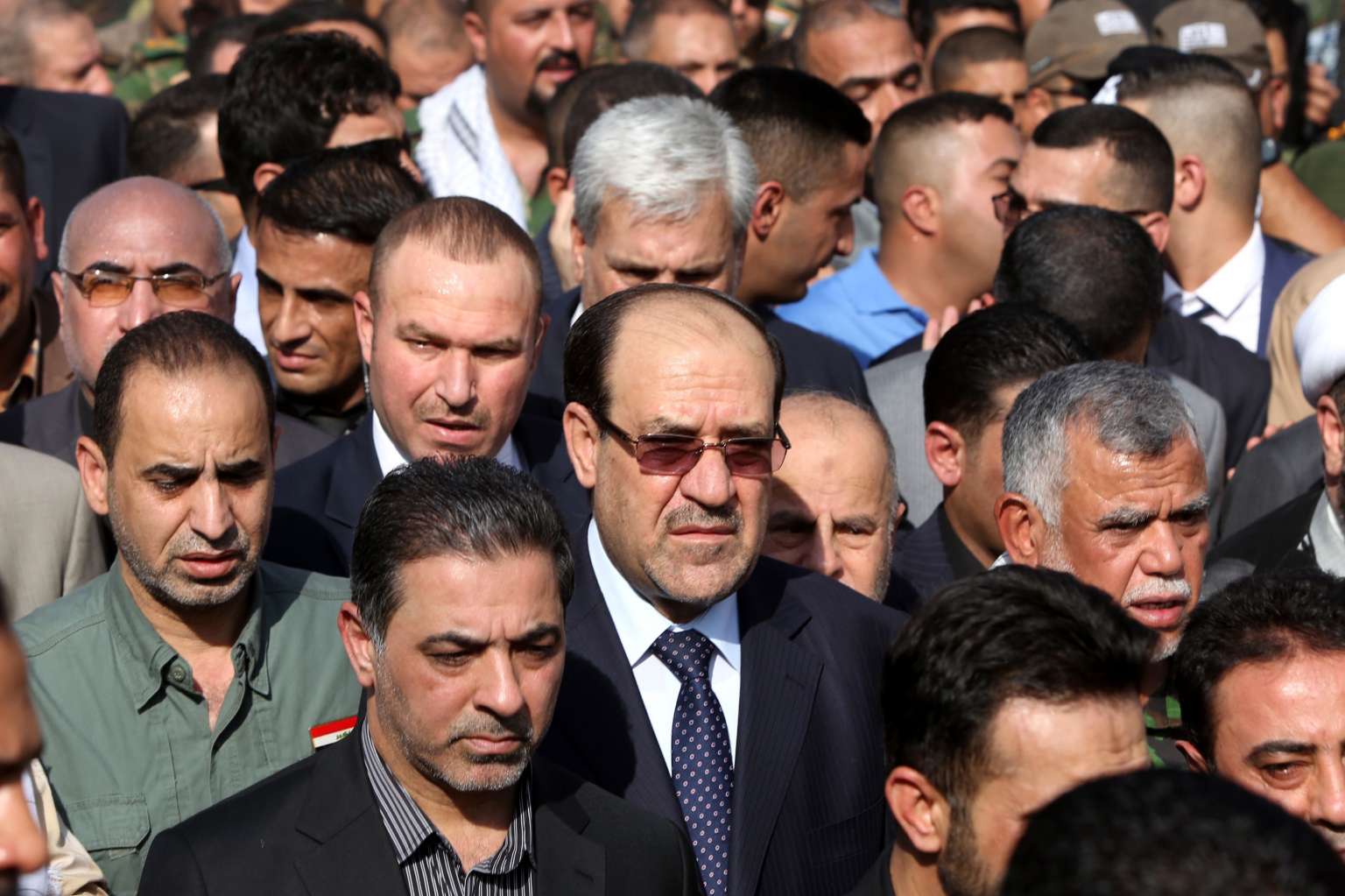 Iraq's Vice President Nuri al-Maliki (centre) taking part in a funeral on July 14 in the capital Baghdad. The ex-PM is accused of being connected with the fall of Mosul to the Islamic State in Iraq and Syria (ISIS).