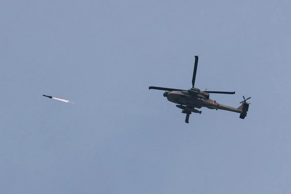 An Israeli military Apache helicopter fires a missile near Israel-Gaza border on Dec 23.