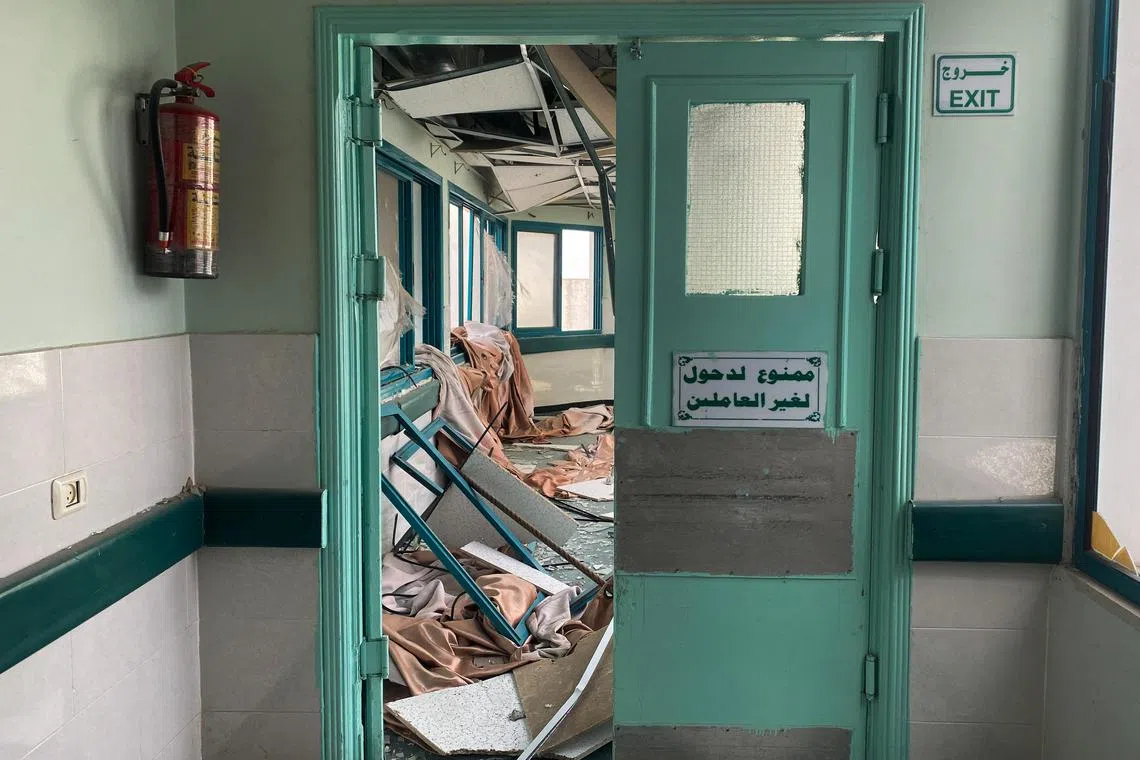 Yafa Hospital, damaged by Israeli strikes, in the central Gaza Strip on Dec 8.