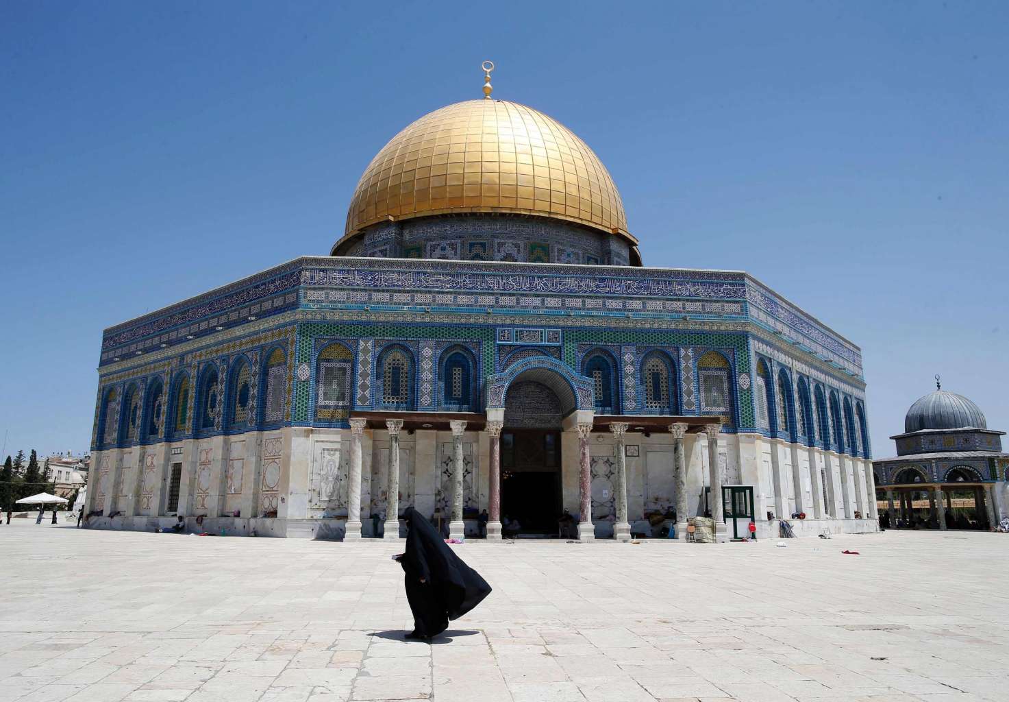 A Palestinian woman walks past the Dome of the Rock in Al-Aqsa Mosque compound in Jerusalem's Old City, on June 26, 2016.