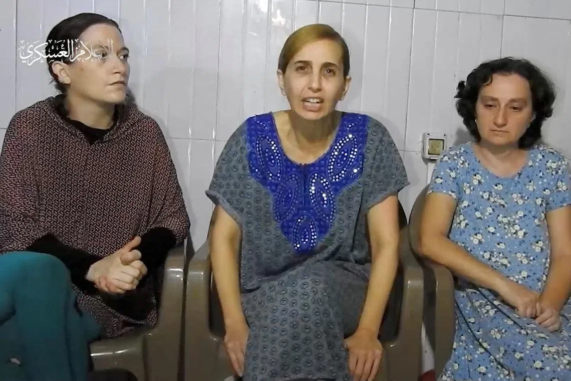 Hamas released a video on Monday that showed three hostages seized by the group on Oct 7.