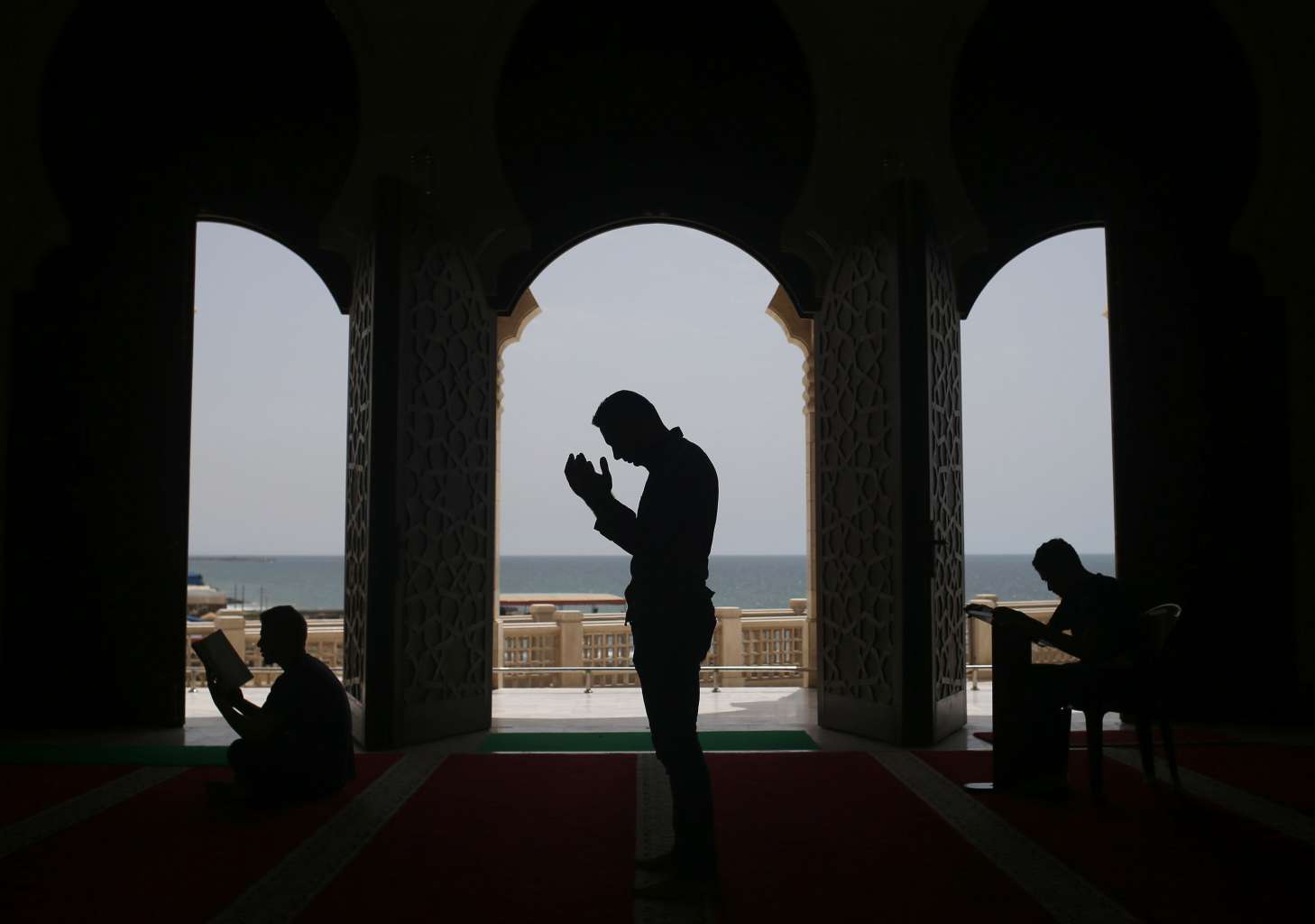 Palestinians pray at the al-Khaldi mosque in Gaza City, on June 8, 2016, on the third day of the Muslim holy month of Ramadan.