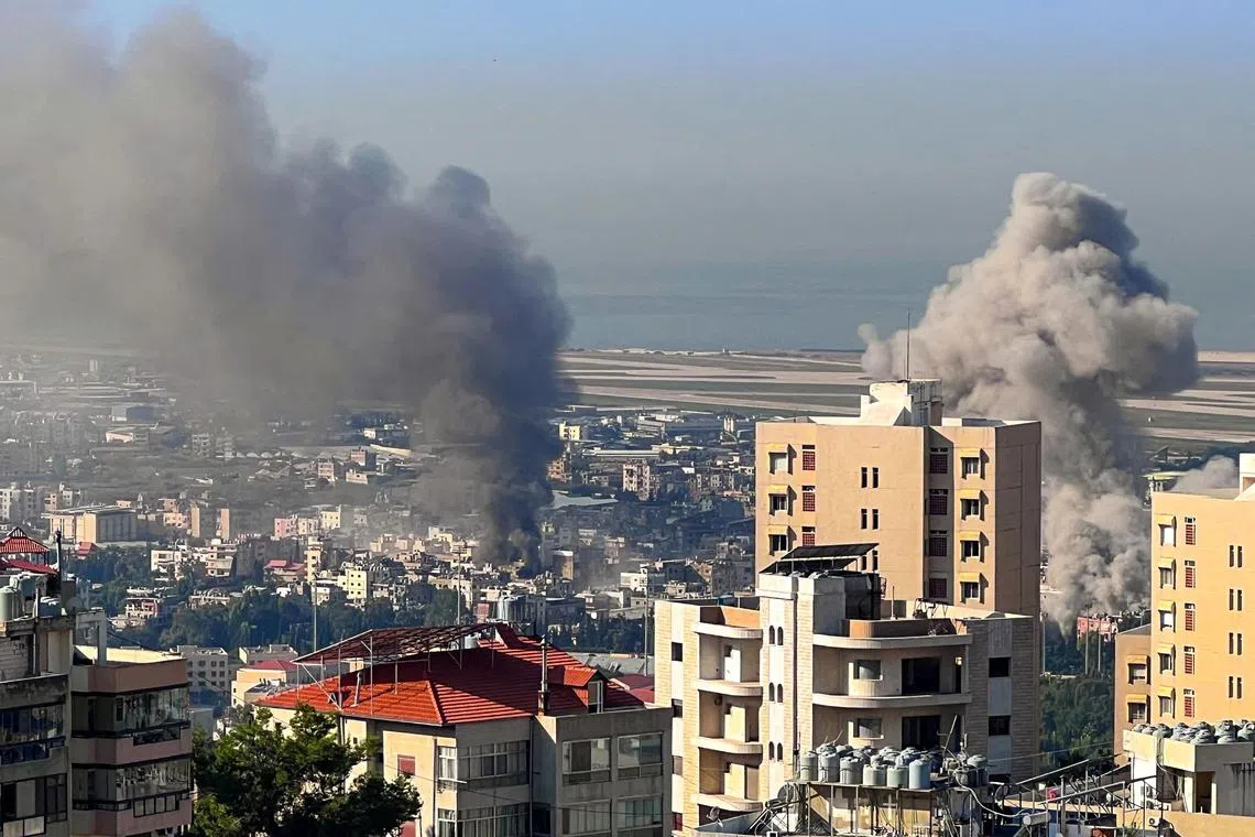 Smoke billowing over Beirut’s southern suburbs after Israeli strikes, as seen from Baabda, Lebanon, on Nov 23.