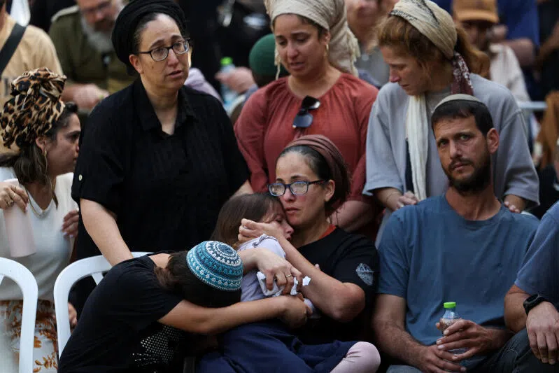 Mourners attend the funeral of Israeli soldier Master Sergeant Yona Efraim Feldbaum at Mount Herzl Military Cemetery, in Jerusalem, on Oct 29.