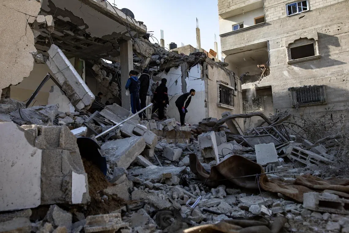 Palestinians inspecting the rubble of a house after an Israeli air strike on the Rafah refugee camp, in the southern Gaza Strip.
