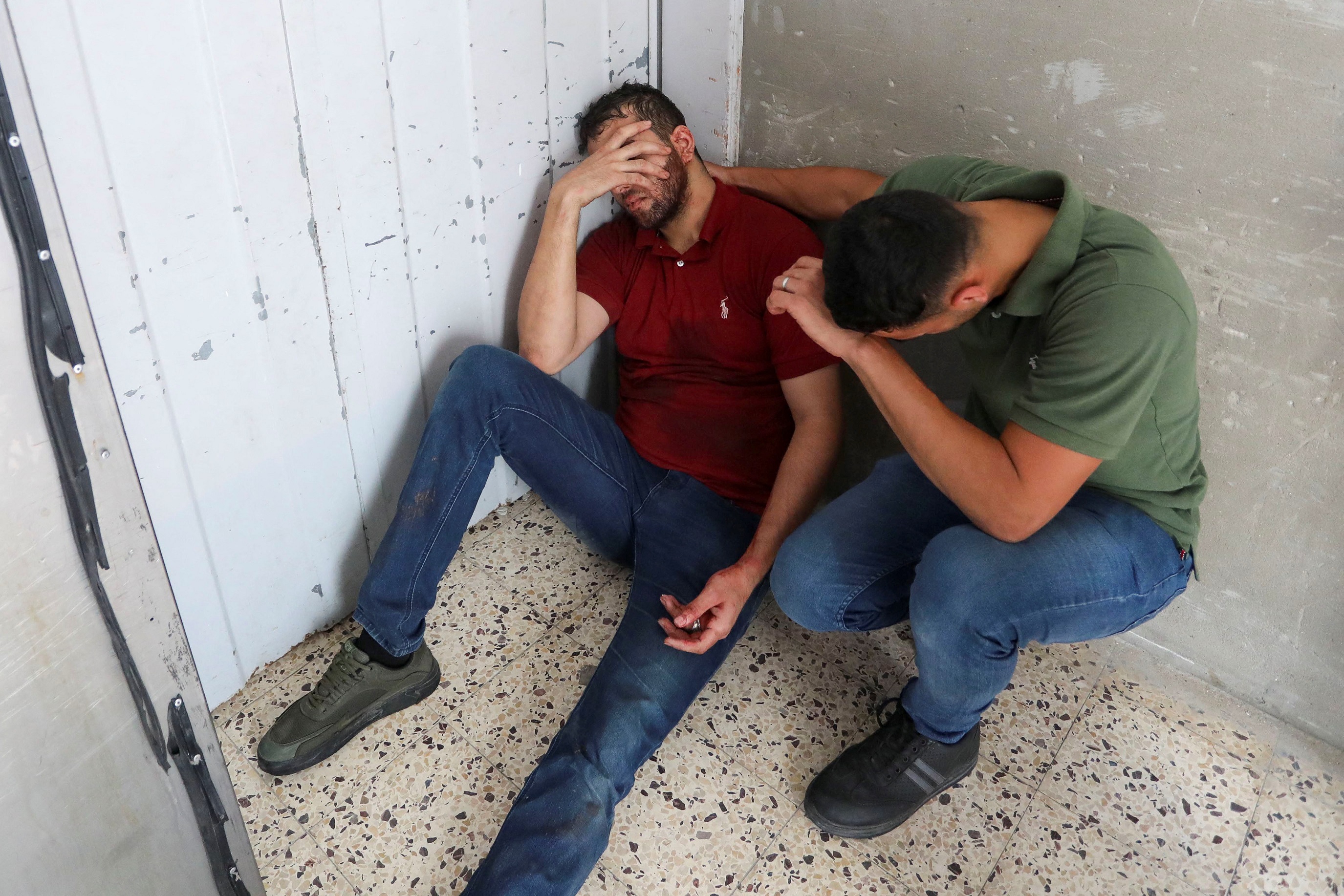 People react at a hospital following Israeli air strikes, in Gaza City, on Aug 5, 2022.