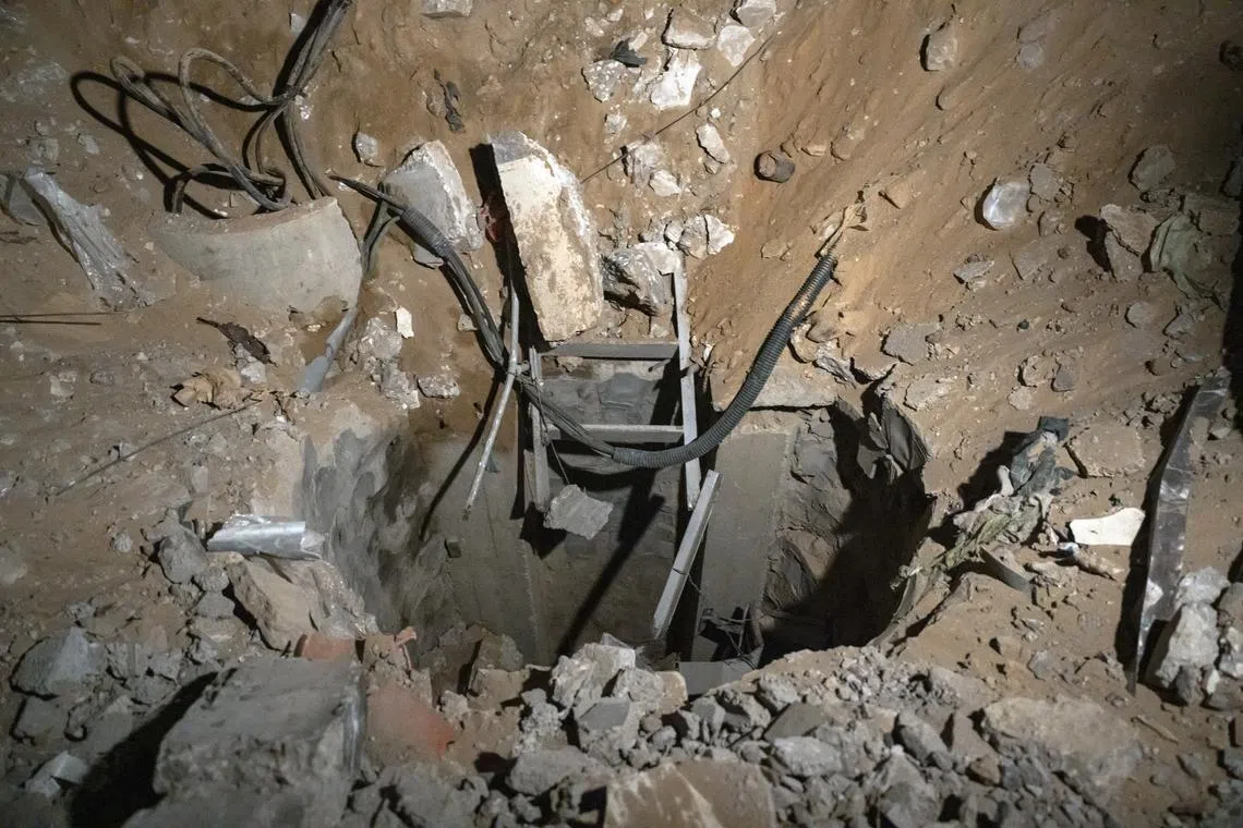 The army released a video it said showed a tunnel entrance in an outdoor area of the hospital, littered with concrete and wood rubble and sand. It appeared the area had been excavated. A bulldozer appeared in the background.