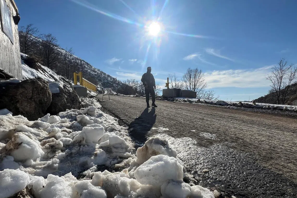 An Israeli soldier guards the entrance to the Israeli army base on Mount Hermon, in the Israeli-occupied Golan Heights.