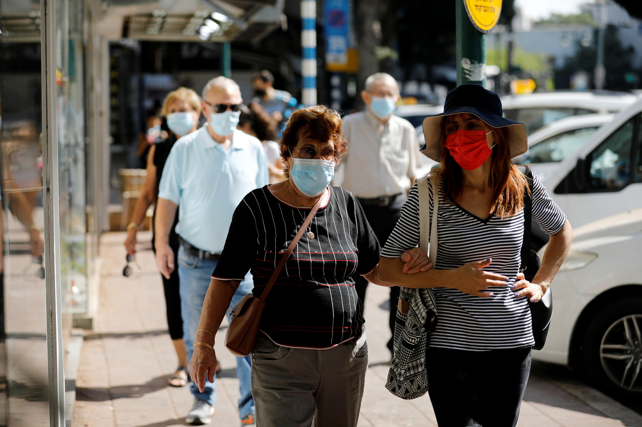 People walking down a street in Ramat Gan, Israel, after the country began easing Covid-19 measures, on Oct 18, 2020.