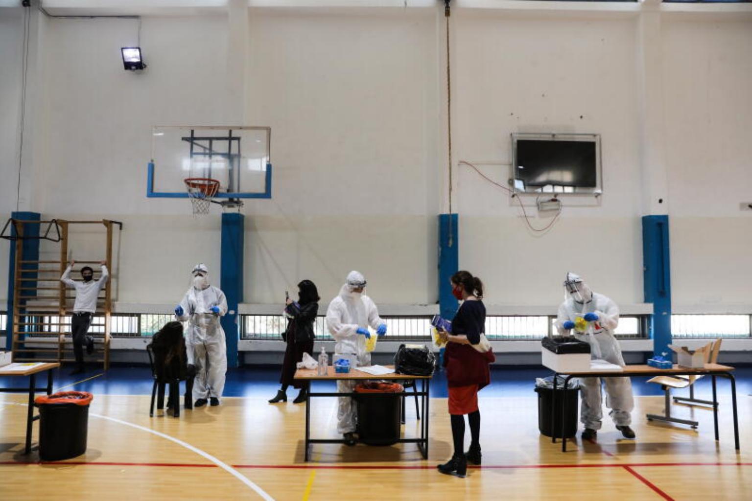 Israeli soldiers collect swab samples for Covid-19 testing in a gymnasium in Jerusalem, on Jan 7, 2021.