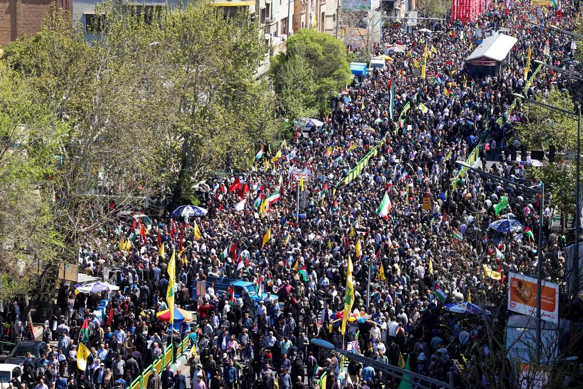 People in Teheran on April 5 attending the funeral procession for seven Islamic Revolutionary Guard Corps members killed in a strike in Syria, which Iran blamed on Israel.