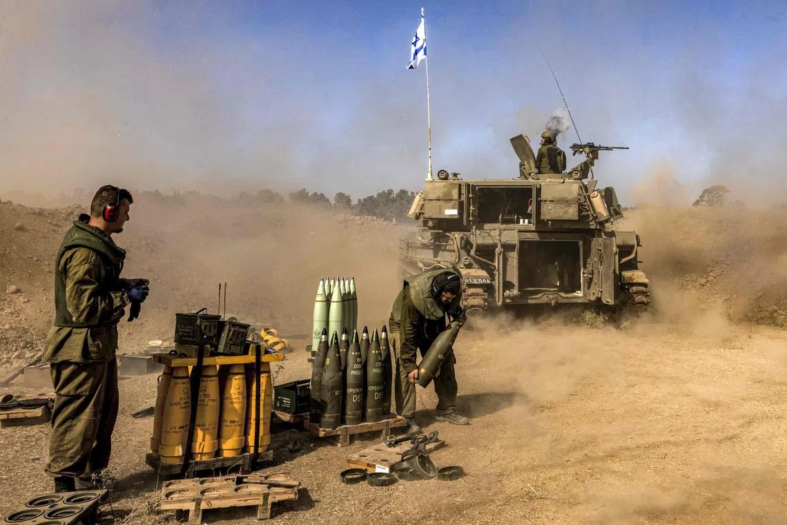 An Israeli army soldier carrying rounds from a stockpile towards a stationed self-propelled artillery howitzer firing from a position near the border with the Gaza Strip in southern Israel on Nov 6.