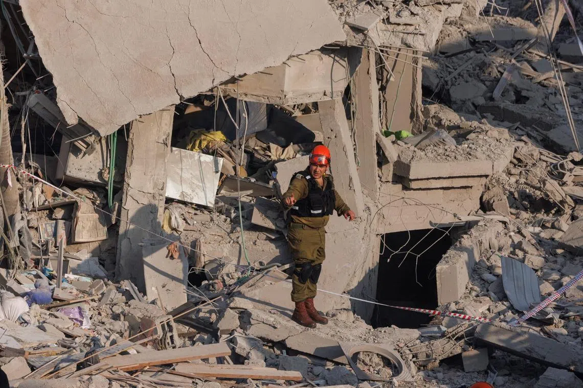 Israeli rescue forces search the rubble of a building hit during a ballistic missile attack by Iran, in Rishon Lezion, Israel, on June 14.