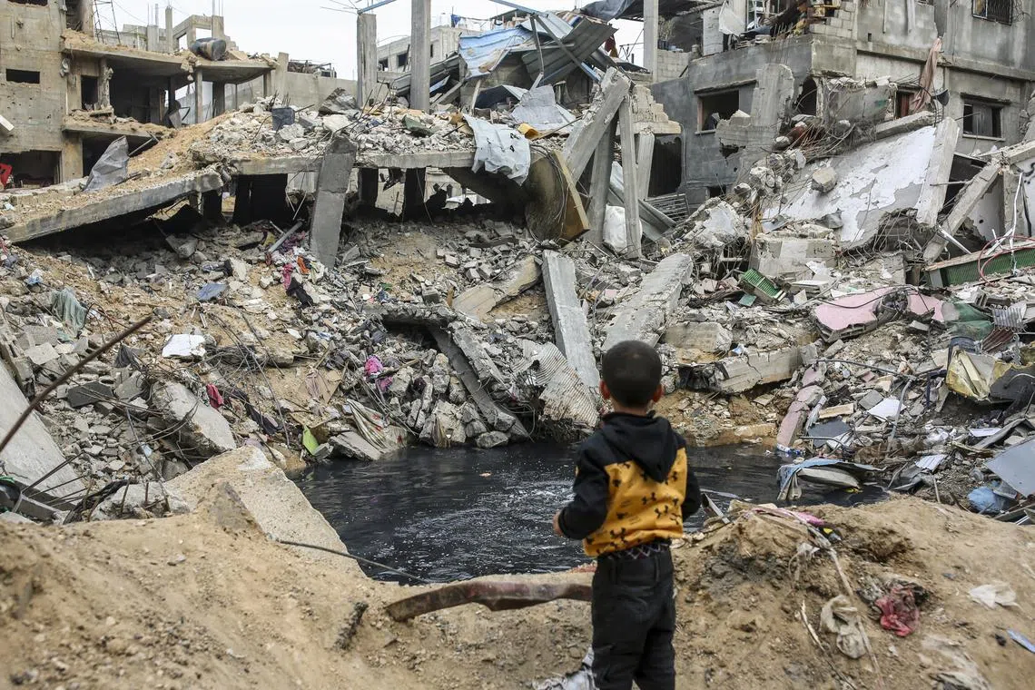A young Palestinian surveys the rubble of destroyed homes in the town of Al-Maghazi, during the second day of a temporary truce in the central Gaza Strip on Nov 25, 2023.