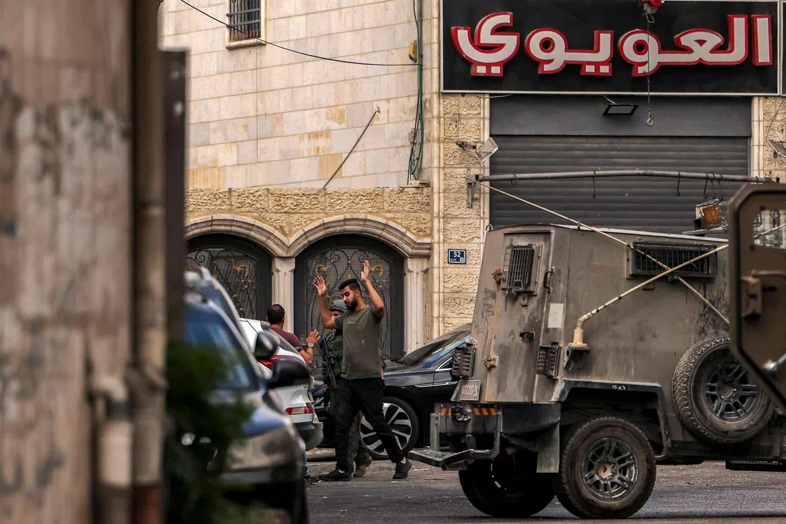 A Palestinian man raising his arms as he is stopped and searched by Israeli forces during a military operation in the city of Hebron in the occupied West Bank on Aug 31.