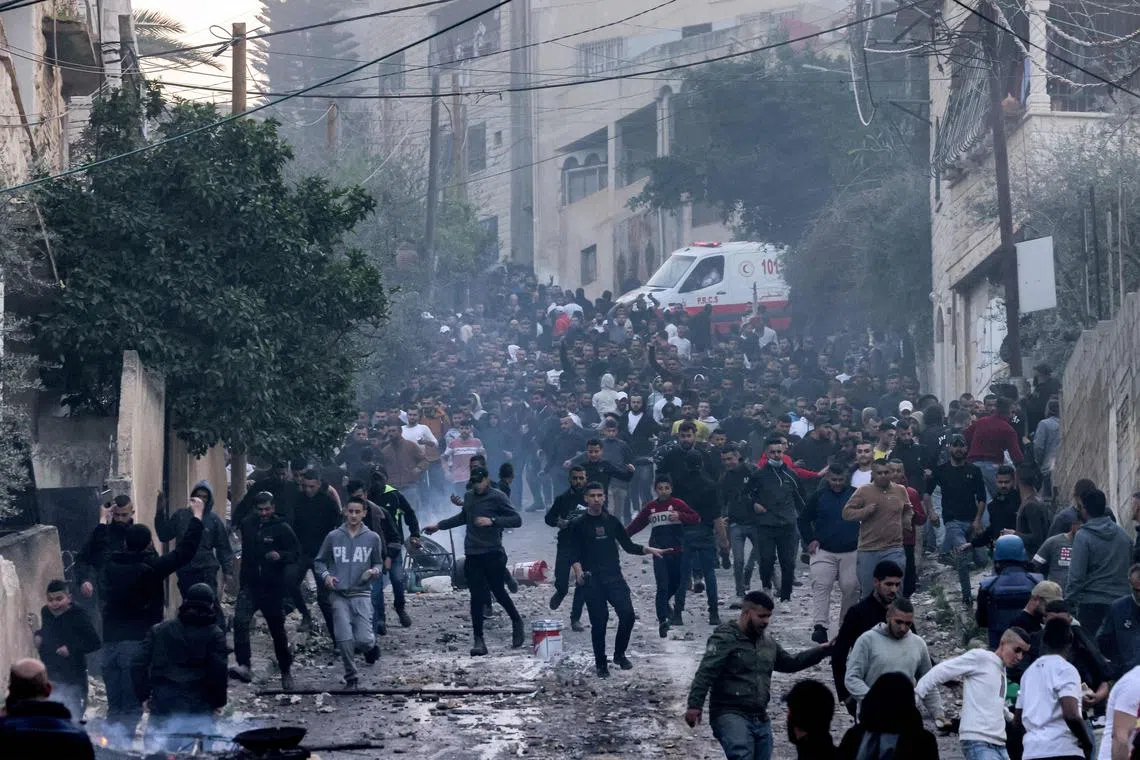 People fleeing amid clashes with Israeli forces (not pictured) during an Israeli army raid on Tuesday on the Jenin camp for Palestinian refugees, in the occupied West Bank.