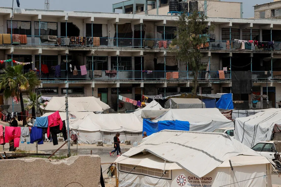 Palestinians, displaced by the Israeli military offensive, shelter in a school in Khan Younis, in the southern Gaza Strip, on April 7.