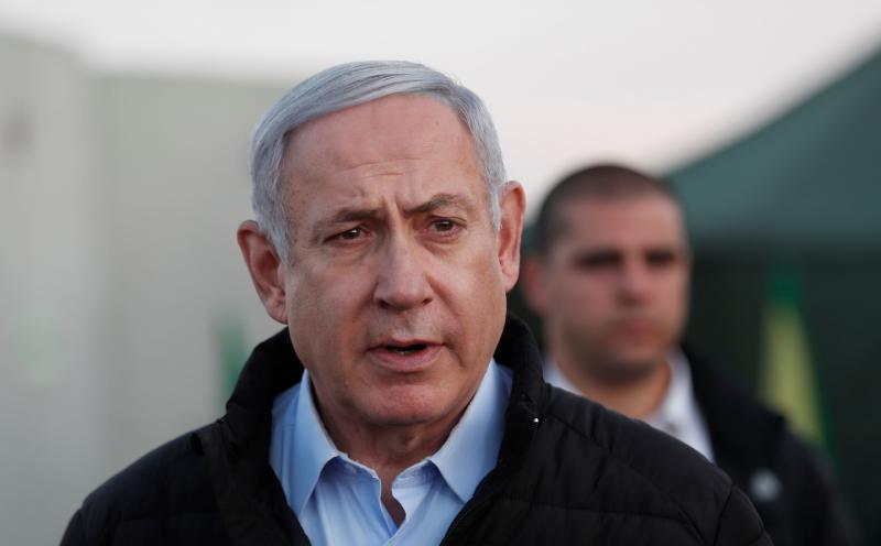 Israel's Prime Minister Benjamin Netanyahu visits an army base in the Israeli-annexed Golan Heights overlooking Syrian territory, on Nov 24, 2019.