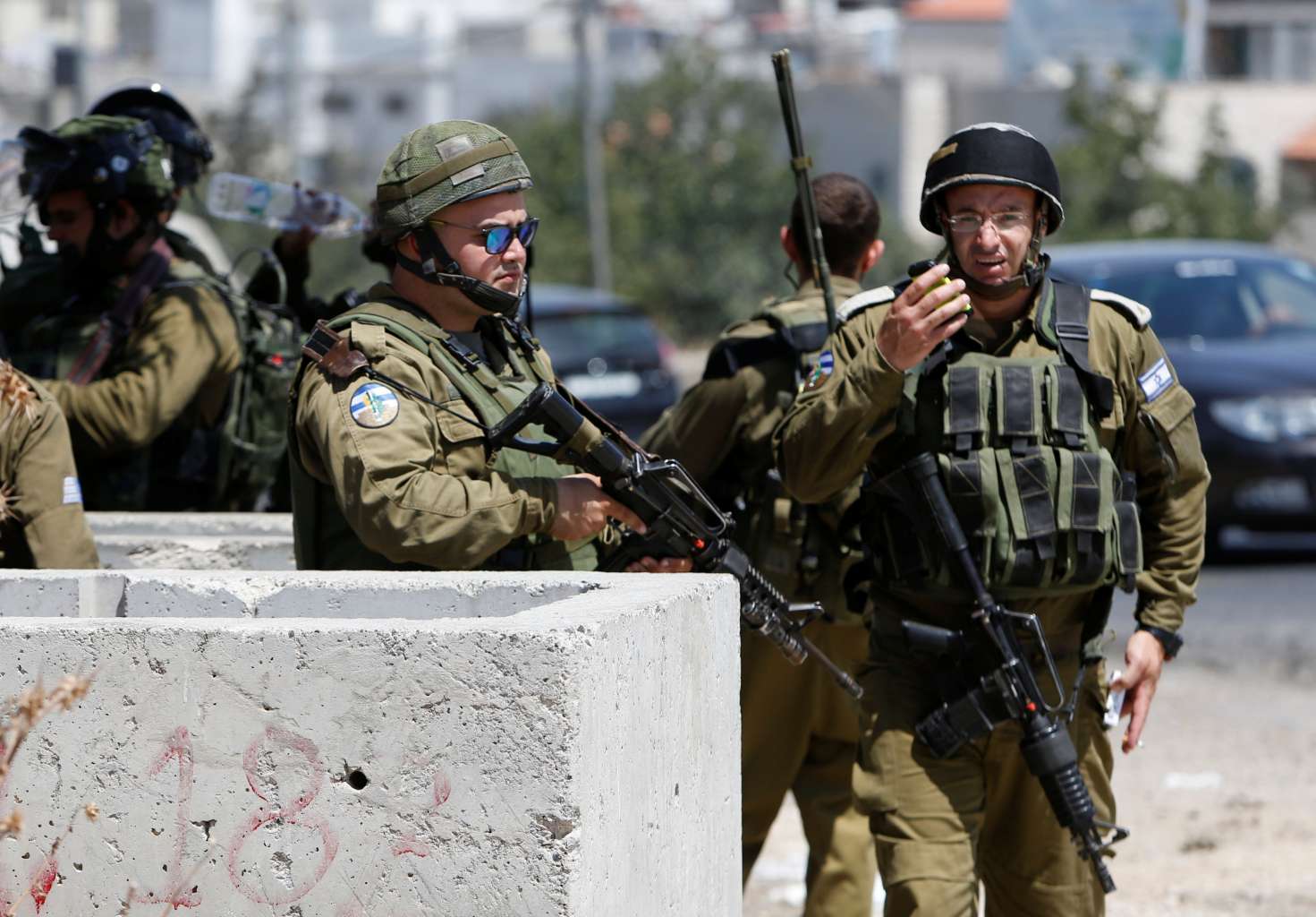 Israeli soldiers at scene of a stabbing attack near the West Bank city of Hebron on July 18, 2016.