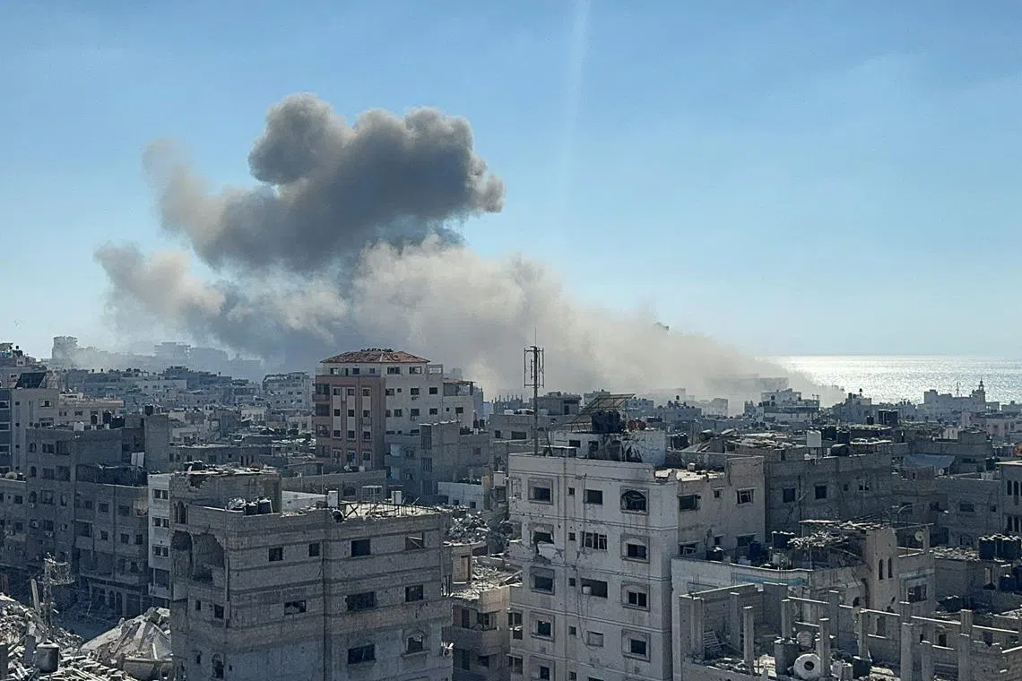Smoke rises following an Israeli strike in Gaza City on Aug 21, 2024.