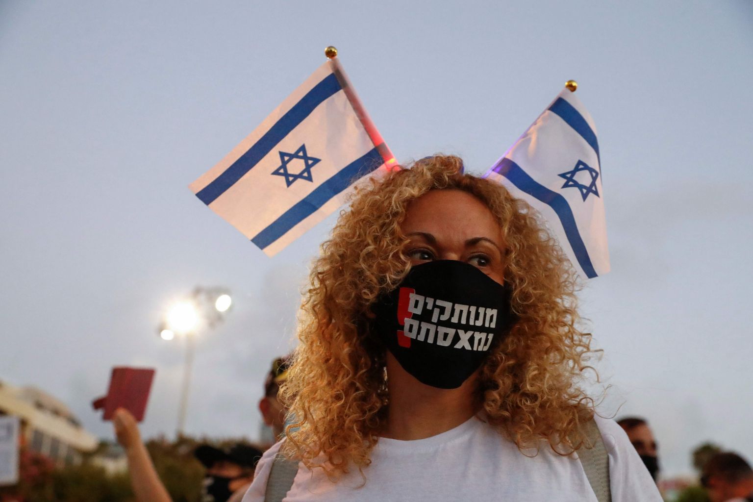 In keeping with restrictions on public gatherings, police limited the number of people allowed into Tel Aviv's Rabin square for the rally as nearby streets filled with demonstrators wearing face masks.