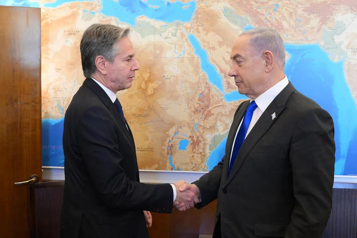 Israeli Prime Minister Benjamin Netanyahu (right) meeting US Secretary of State Antony Blinken in Jerusalem on Feb 7.