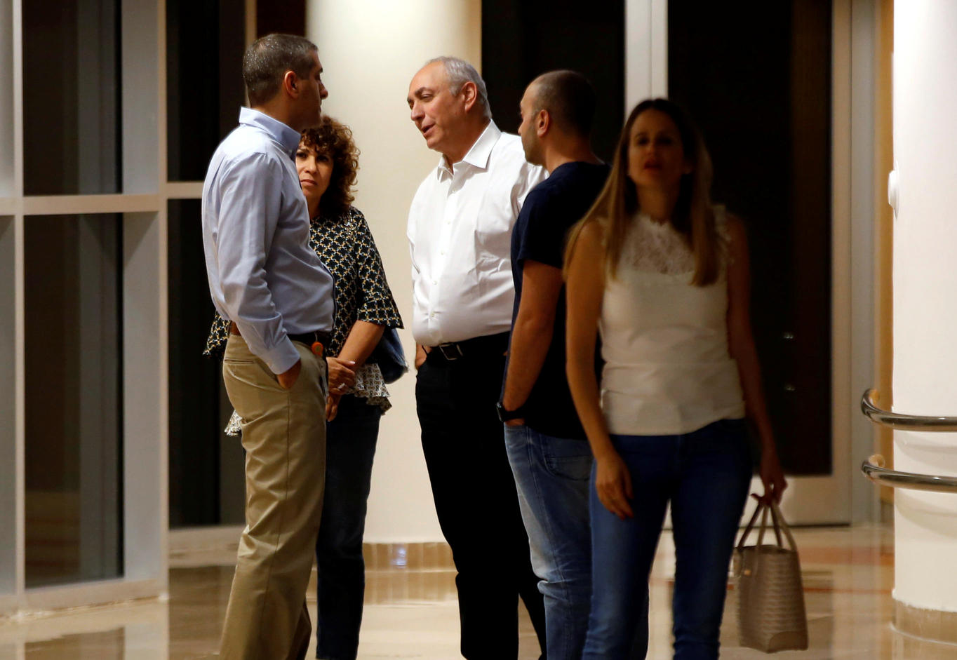 Chemi Peres, son of former Israeli president Shimon Peres, speaks to a medical official in a hospital near Tel Aviv, on Sept 13, 2016.