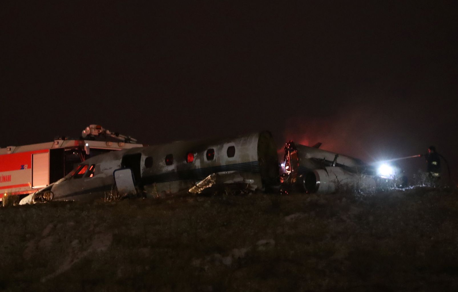 Sahin said that the plane sped off the runway and caught fire but its occupants were able to climb out of the aircraft themselves.