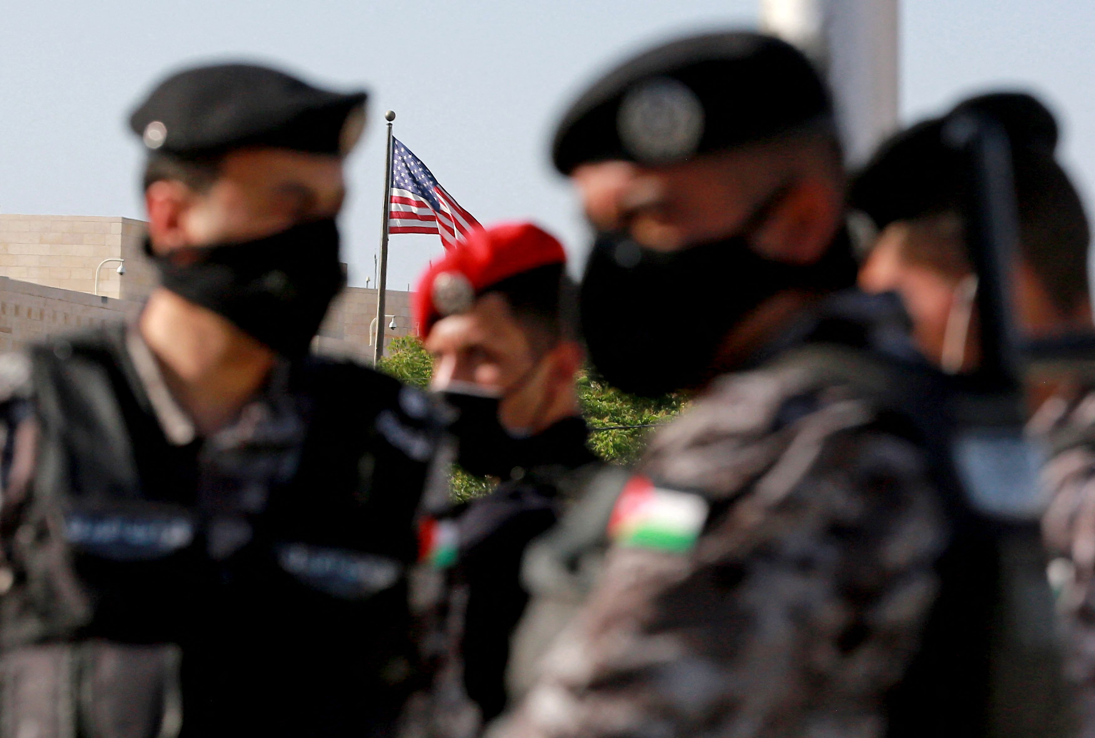 Jordanian police deployed outside the US embassy in Jordan's capital Amman on May 26, 2021.