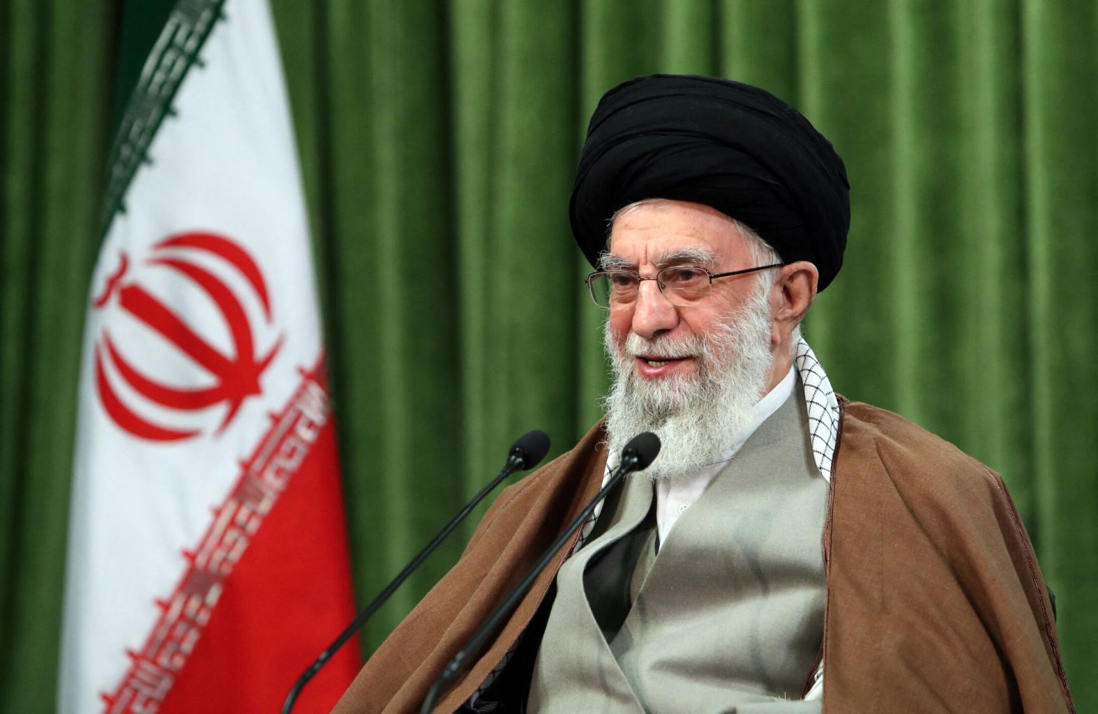 Iran's Supreme Leader Ayatollah Ali Khamenei giving a live televised speech in Teheran, on March 21, 2021.