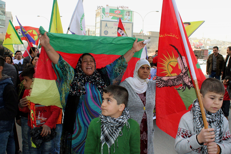 Syrian Kurdish refugees carry the Kurdish YPG forces flag during a demonstration against the military operation by the Turkish army against the Kurdish YPG forces in Syria's Afrin, in Sulaymaniya, Iraq, on Jan 21.