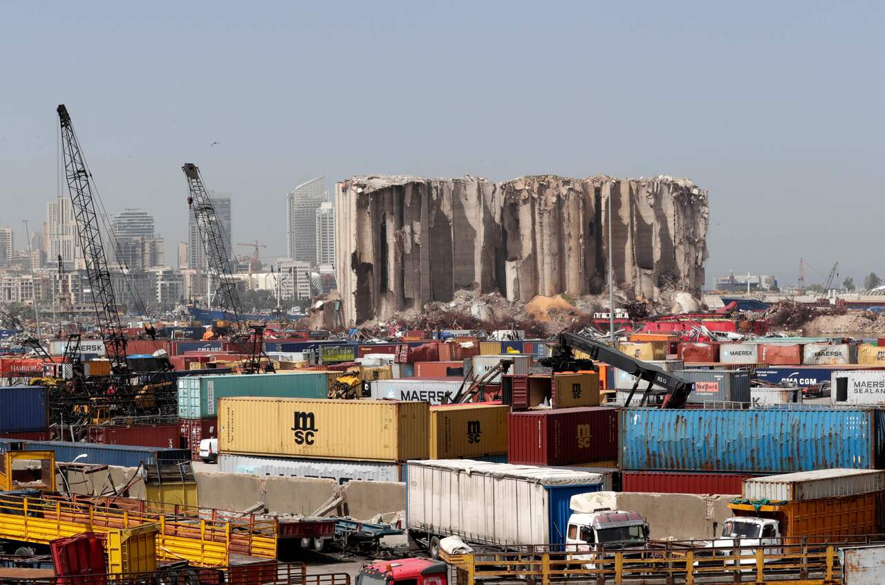 <p>This picture shows the silos of the Beirut port, destroyed in a giant blast on August 4 last year, in the Lebanese capital, on April 6, 2021. - On April 13, Lebanon will mark 46 years since clashes erupted in Beirut between Lebanese Christians and Palestinians backed by leftist and Muslim factions, marking the beginning of a 15-year conflict.