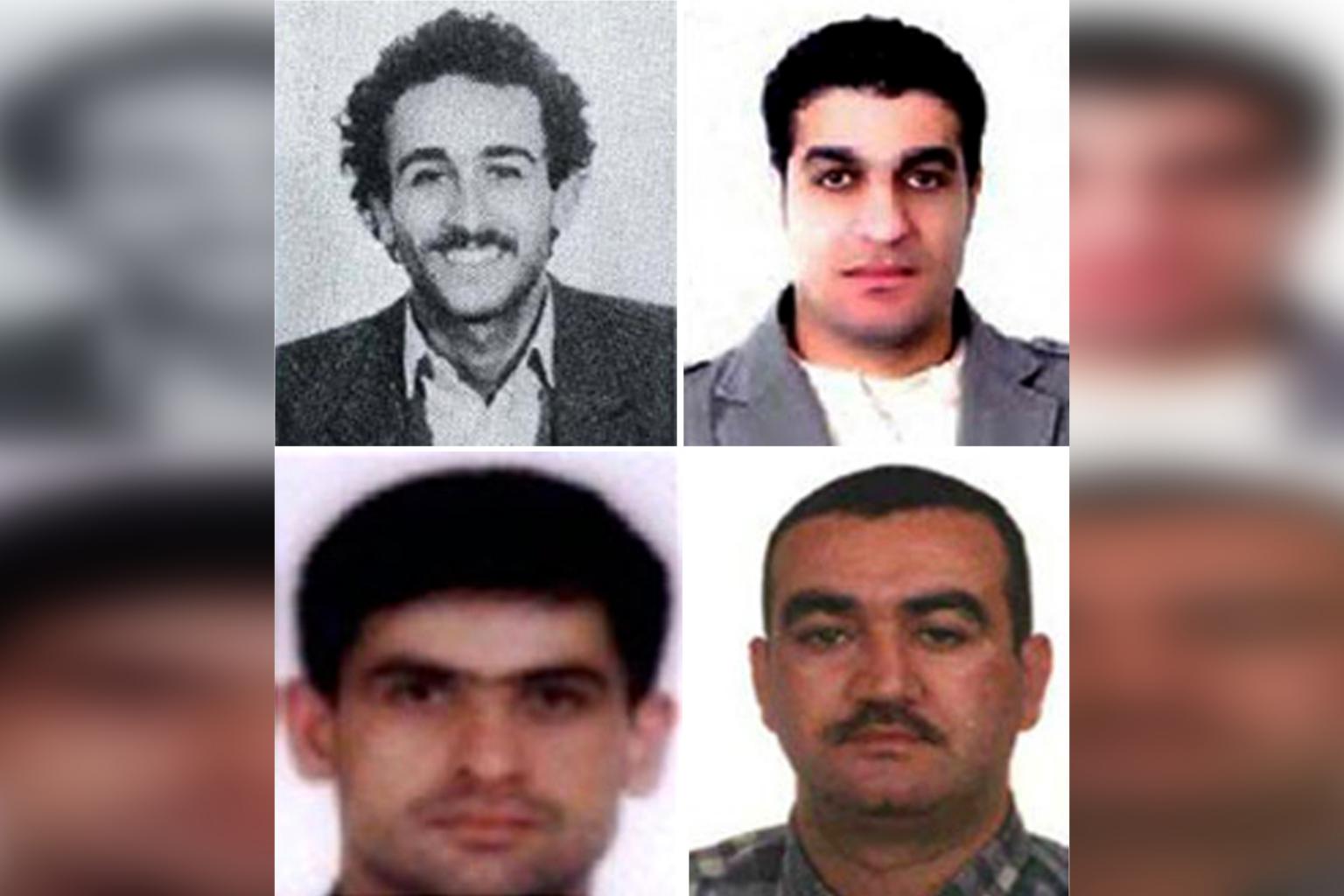 The four Hizbollah suspects accused of the 2005 assassination of Lebanon's former prime minister Rafic Hariri, from a photo dated July 29, 2011.