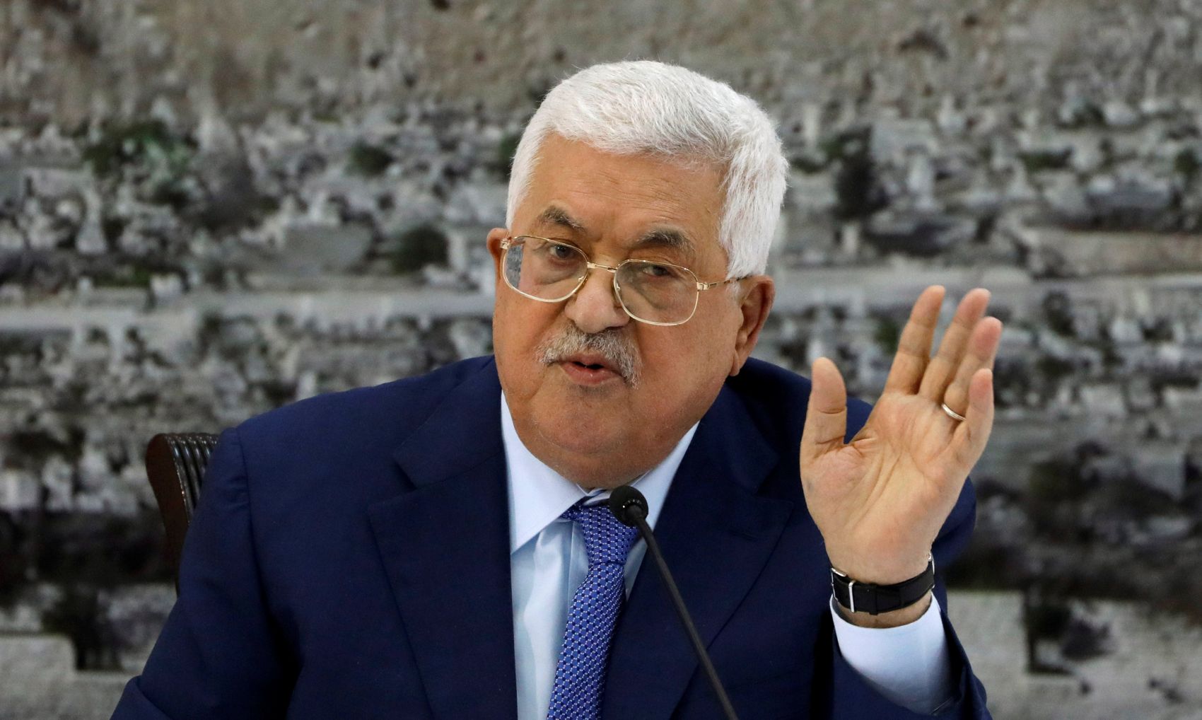 Abbas gestures during a meeting with the Palestinian leadership in Ramallah, Dec 22, 2018.
