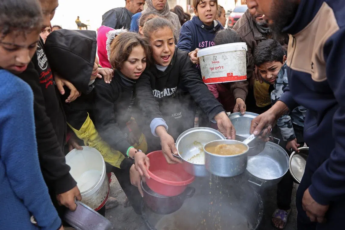 Palestinians gather to receive aid food being distributed by charitable hospices in Gaza City, on Jan 11.