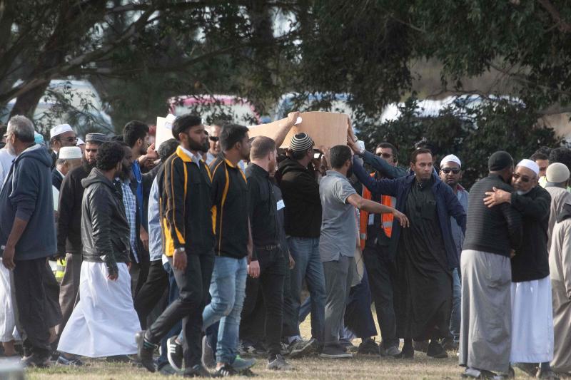 Mourners proceed with the coffin of a shooting victim, slain by an Australian gunman who went on a killing spree at two mosques, at the Memorial Park cemetery in Christchurch on March 20, 2019.